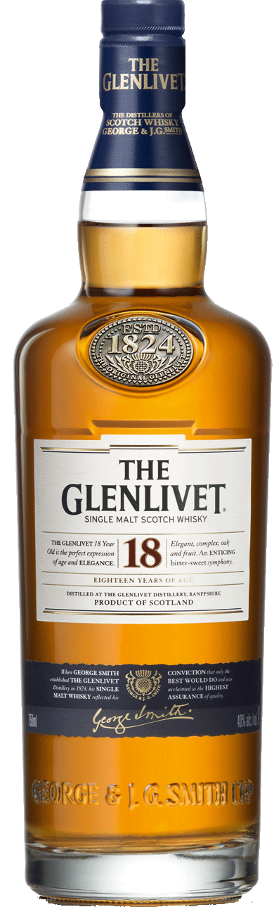 One of the many reasons why we love whisky is the care required to produce it. Not only are we impressed with the process but even more with how long it takes to make this stuff. From grain to barrel you are looking at most a week, depending on your process. Distillers would love to bottle all of their stock this quickly, and some do, but as we all know whisky needs to be aged in order to be taken seriously. Since up to 75% of a whisky’s flavor is influenced by time spent in oak, a significant number of years are required to mellow, balance and create flavor complexity. Any product that requires this much care and time is worthy of focused attention and appreciation. Today’s selection, The Glenlivet 18 Year Old is a single malt that has spent plenty of time in the cask. On to some particulars…