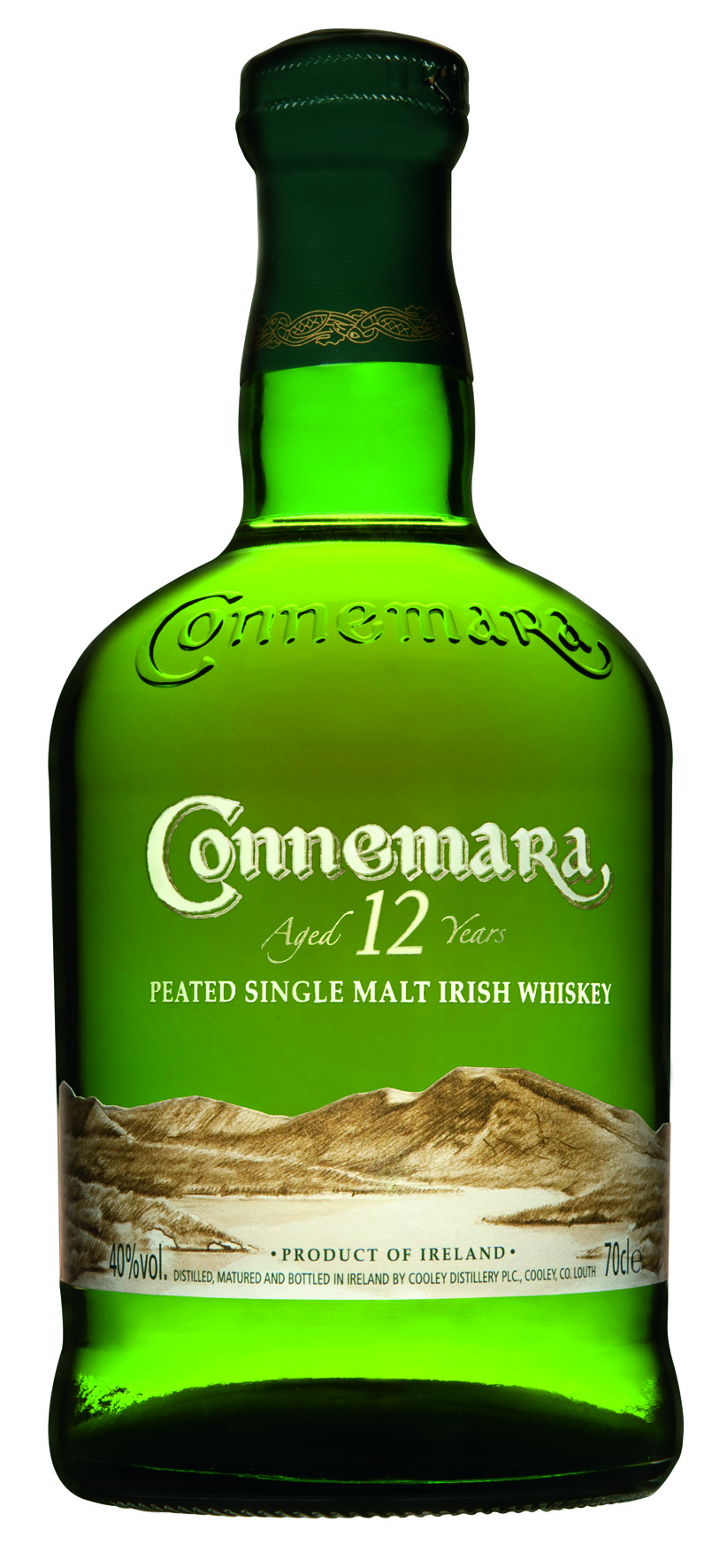 We reviewed last month an American attempt at a traditional Scotch style peated whiskey, and now we look at Ireland’s attempt in Connemara 12 Year Old Peated Single Malt Irish Whiskey. This peat smoke dried single malt is double distilled rather than the traditional Irish triple distillation and is aged 12 years in bourbon casks. Don’t be fooled however with the prominent “peated” aspect of Connemara as compared with Islay, for today’s selection is peated at a phenolic level of 13-14 ppm (Ardbeg is above 50ppm). Also, 12 years is not generally a kind aging period for those that want peat kick; longer maturation tends to calm and smooth out peaty flavors, hence a number of Islay standards are only 10 years old. Nevertheless, the Cooley distilled Connemara 12 is produced in limited quantities and clocks in at 40% ABV. On to the review…